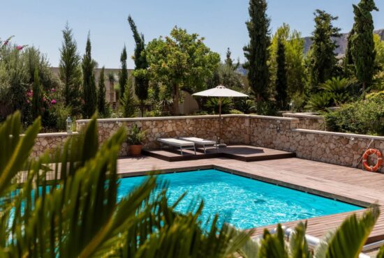 Lion View features a shared outdoor relaxation area with sun loungers, wet lounge, braai area, solar-heated saltwater infinity pool.